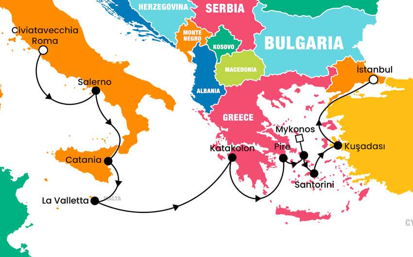 Rota: Civitavecciha (Roma) - Civitavecciha (Roma) Süre: 7 gece Liman sayısı: 8 Güzergah: - İstanbul – Roma (FCO) - Civitavecchia - Palermo | Cefalu & Palermo Turu - ...